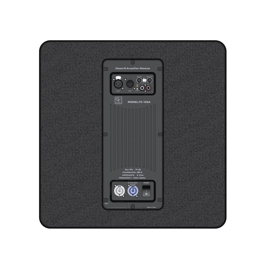 Với vỏ ngoài được làm từ ván ép chất liệu cao và sơn loa Polyurea, CF TC-12SA không chỉ có vẻ ngoài sang trọng mà còn có khả năng chịu va đập và bền bỉ theo thời gian. Nó cũng được trang bị các đầu nối PowerCON/XLR/RCA linh hoạt để kết nối với các thiết bị âm thanh khác. Tổng thể, kích thước của loa sub là 420×410×541(mm) và có trọng lượng 22.75 Kg, rất thuận tiện để di chuyển và sử dụng.